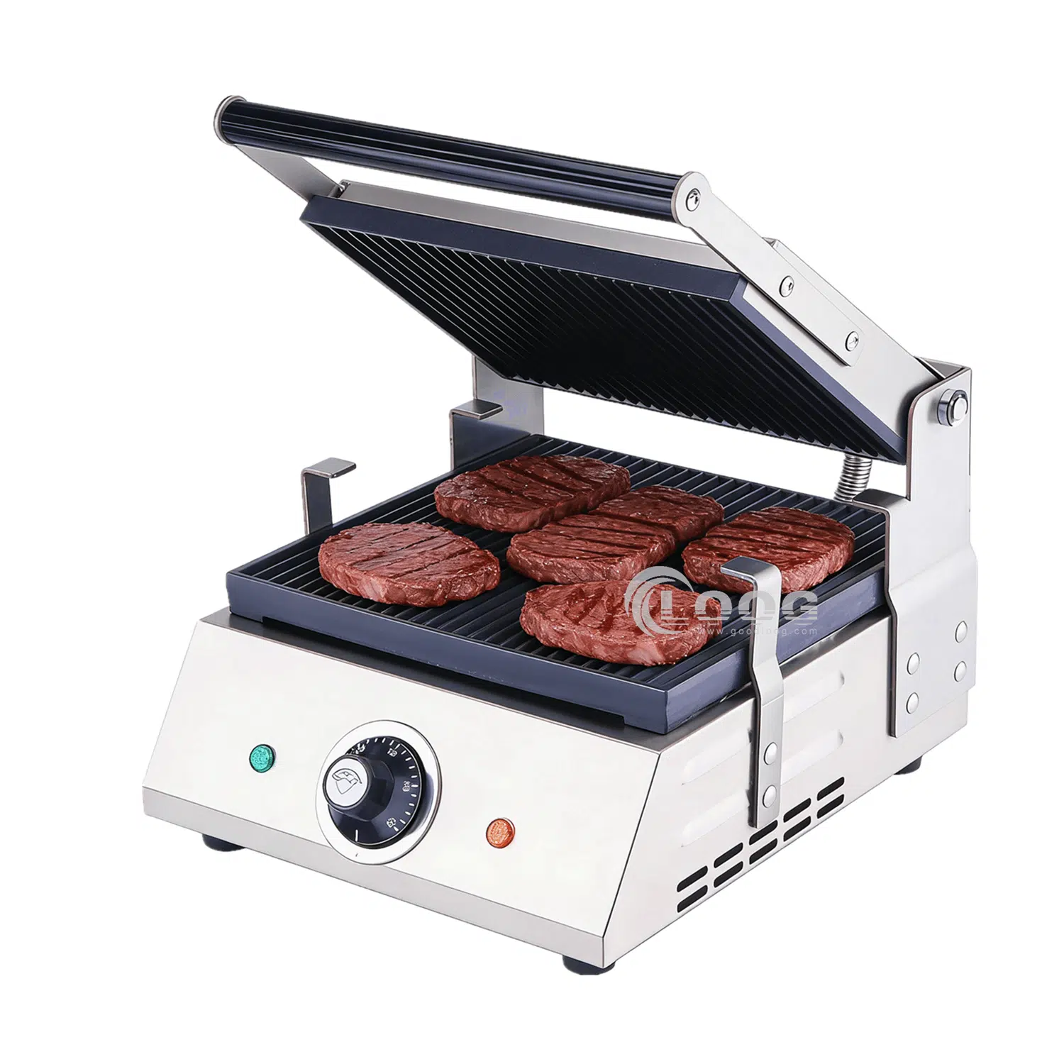 The electric contact grill is designed for commercial use,to grill meat,sandwiches,paninis and vegetables; Panini sandwich grills with cast iron grooved plate for even heat distribution and leave attractive grill marks.
